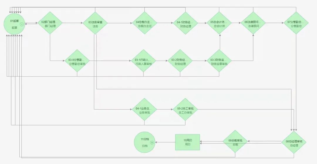 申請人發起流程申請后,系統根據節點設置實現自動流轉,實現從申請到蓋章全程無紙化辦公。