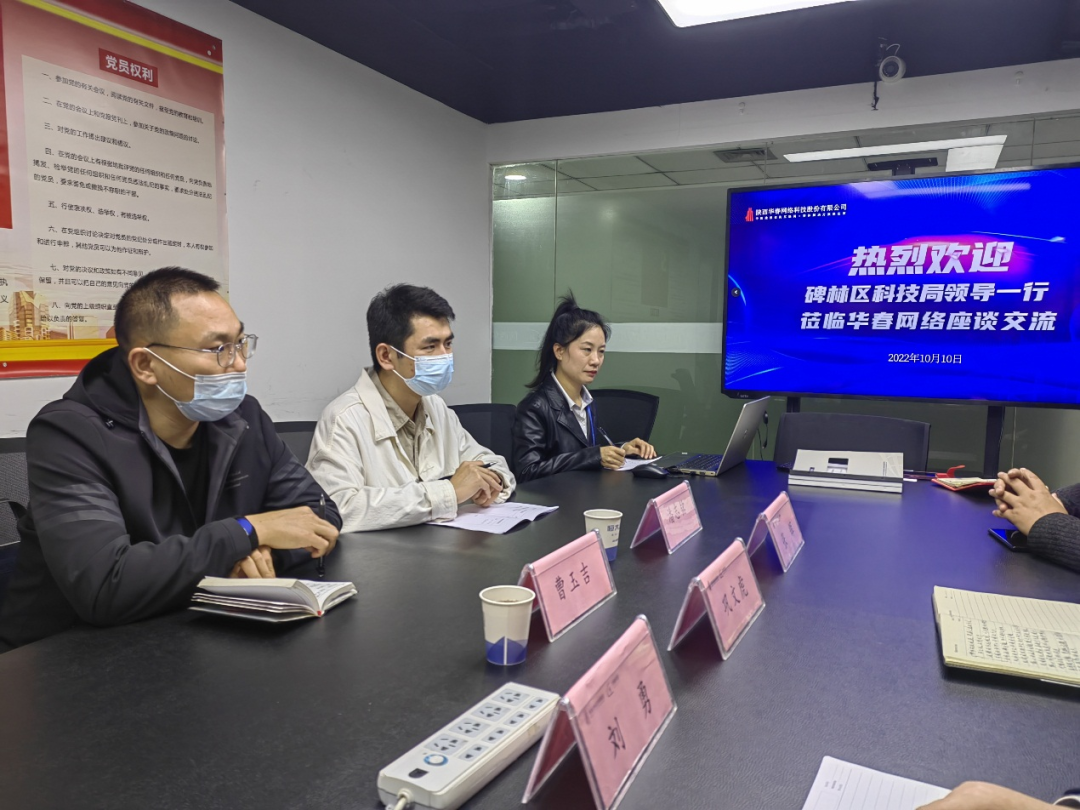 碑林區科技局曹主任一行對華春網絡科技公司業務發展取得的成效表示肯定,并重點圍繞產學研合作和科技成果轉化政策進行了深入交流,同時,向企業介紹了高企復審及入庫要求、研發費用加計扣除等相關申報條件和獎勵政策。