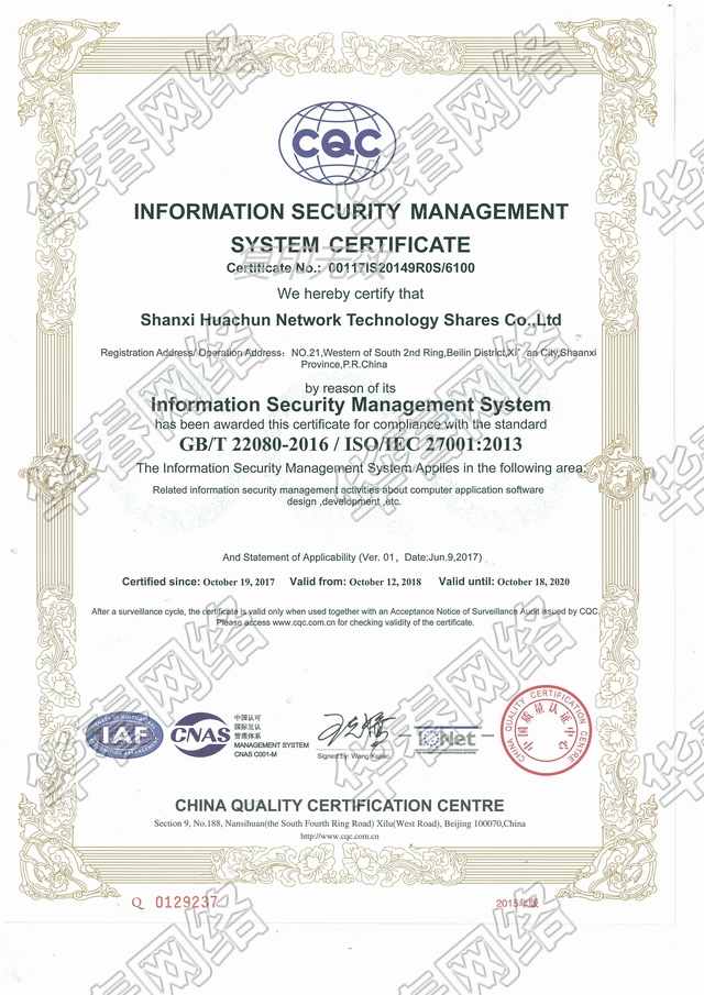 信息安全管理體系ISO27001認證