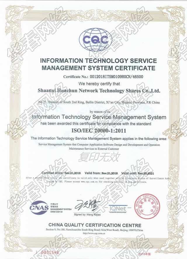 信息技術服務管理體系ISO2000認證